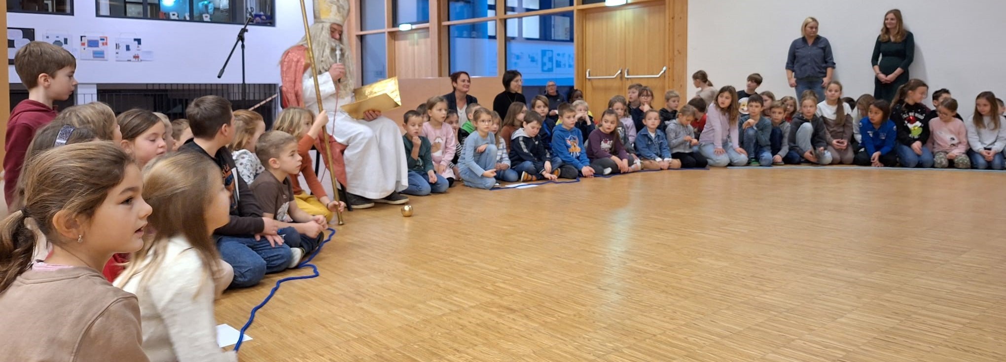 Wie jedes Jahr im Advent bekamen die Kinder der Volksschule auch heuer am Freitag, 6. Dezember wieder Besuch vom Nikolaus. Die Kinder aller Klassen hatten gemeinsam mit ihren Lehrerinnen verschiedene Beiträge – Lieder, Gedichte, Musikstücke,.. – für die gemeinsame Nikolausfeier in der Aula vorbereitet. Auch der Nikolaus kam nicht mit leeren Händen und überreichte am Ende der Feier den Kindern jeder Klasse einen Korb mit Säckchen für jedes Kind und deren Lehrerinnen.