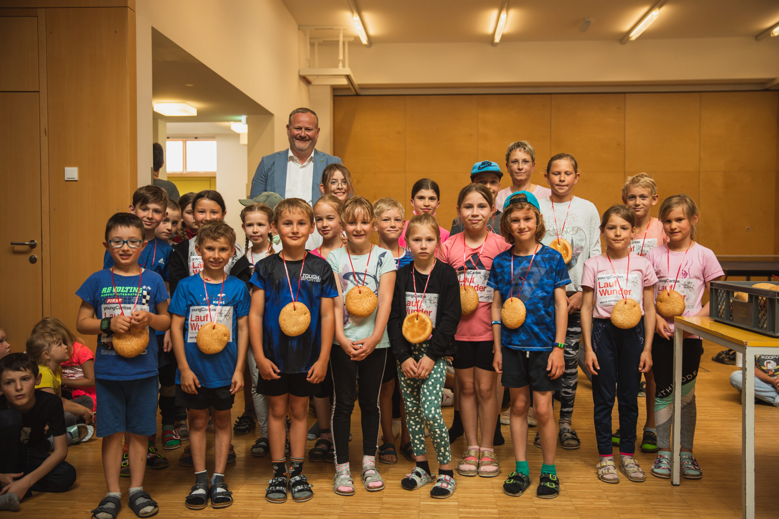 Die Schüler/innen der VS Rainbach und der MS Rainbach (Organisator) liefen heuer wieder für das Projekt „LaufWunder“ der youngCaritas. Der Erlös der Veranstaltung wurde der Caritas OÖ gespendet, die die Menschen aus der Ukraine in Österreich und in ihrem Heimatland unterstützt.